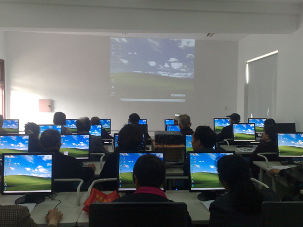 2013年12月28日,汤山街道老年学校的35名学员(年纪最大的77岁、最小的59岁)正在社区教育中心的机房里在老师的指导下,在教室里认真学习聊天群的使用方法。他们将在为期15天的时间里,系统地学习基础操作、网络搜索引擎的使用、电子资料传送、计算机基础维护、网络知识等内容。授课老师将根据中老年的实际情况,采取浅显易懂的理论讲解与学员直接上机、现场指导的办法进行培训,使学员在短时间内就能掌握电脑的基本操作和应用方法。