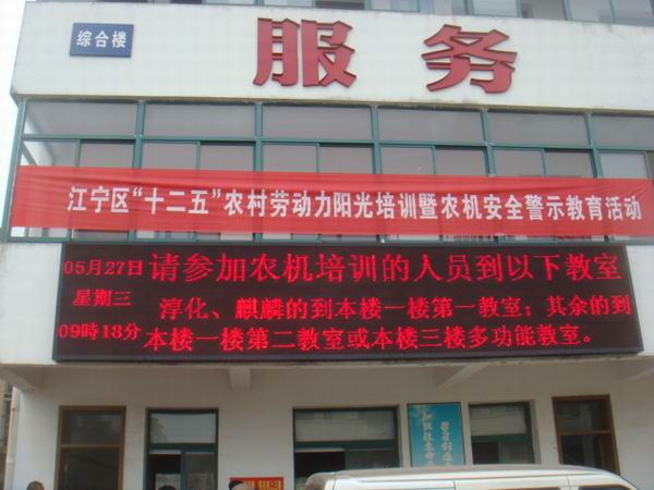 2015年5月27日,汤山街道社区教育中心联合街道农机站在学校举办农村劳动力阳光培训暨农机安全警示教育活动,汤山街道、麒麟街道、淳化街道的拖拉机、联合收割机、高速插秧机、农机驾驶操作人员,以及农机专业合作社人员200人参加了活动。