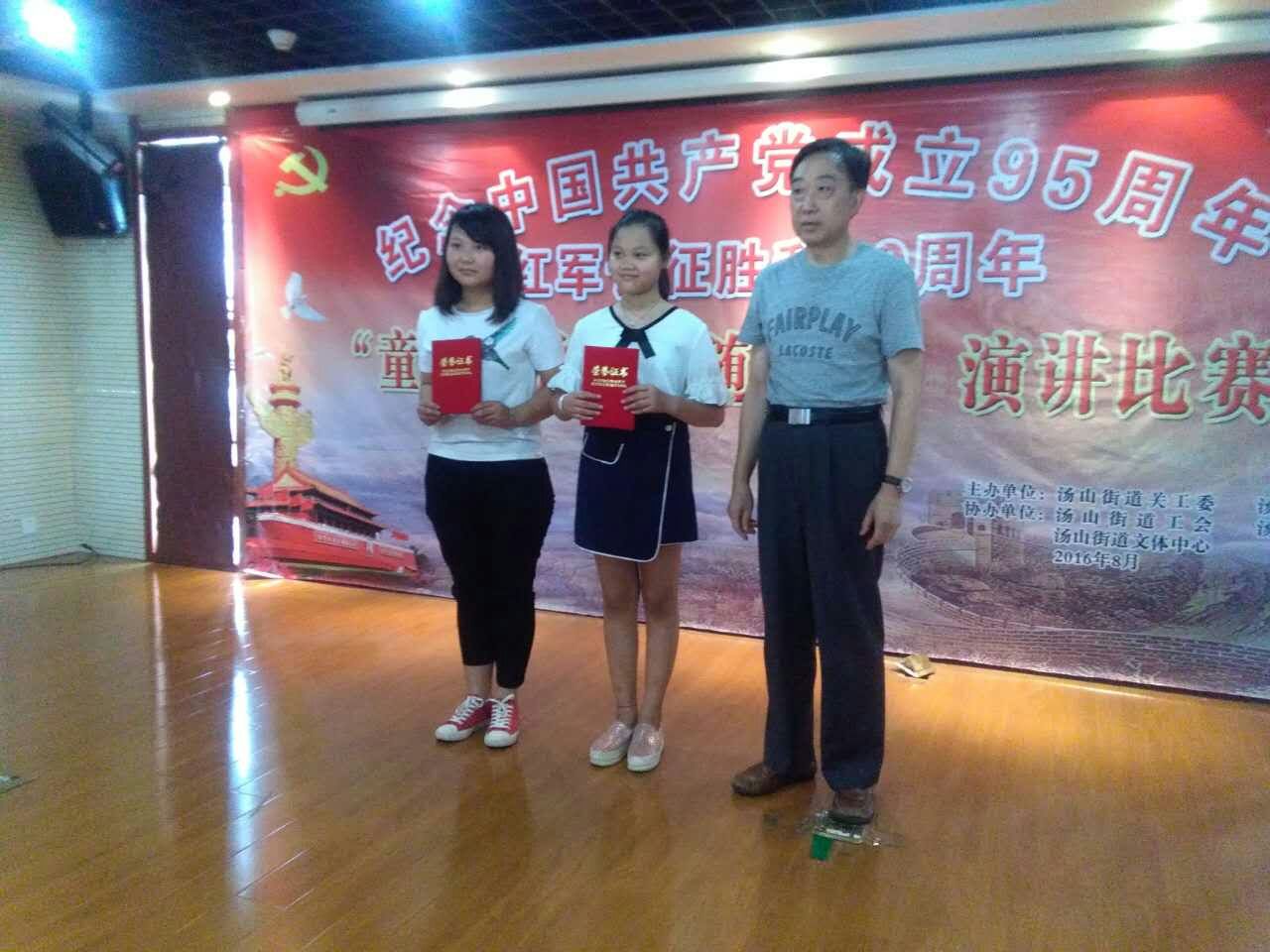 在演讲会上,20名参加演讲的同学,用大量的事实,述说了中国共产党九十五年的奋斗求索,九十五年的风雨历程,九十五年的沧桑巨变,无数共产党人的前赴后继,铸就共产党的诞生、成长、壮大和辉煌,诉说了红军战士吃尽了千辛万苦取得了长征胜利的业绩。演讲中,同学们饱含激情,表现出色,阜庄社区的郭倩楠、王梦瑶同学荣获了并列第一的好成绩。